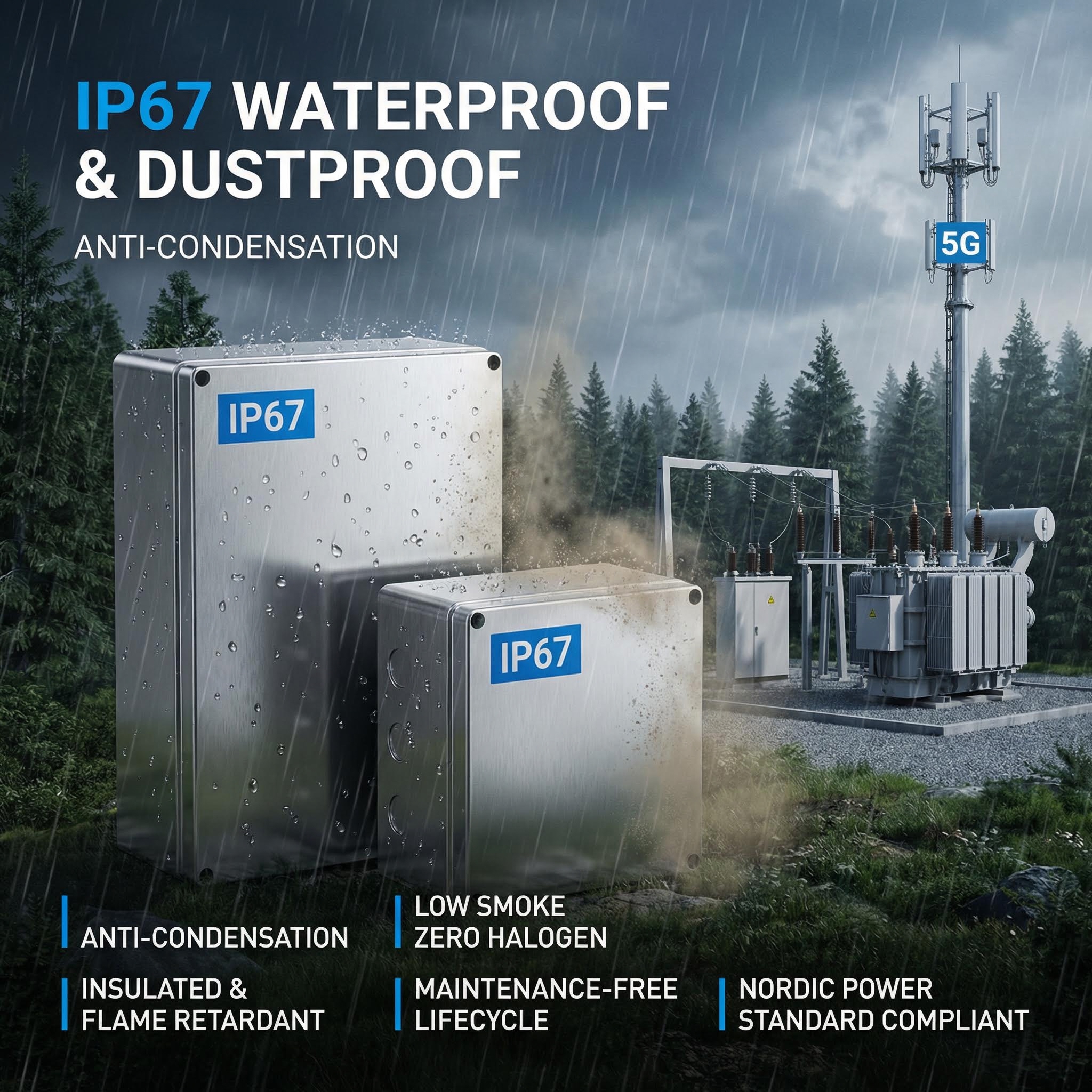 深圳某储能科技企业,专注于大型独立储能电站、工商业储能项目的研发、建设与运营,旗下拥有3个大型储能电站(总容量800MWh)、20余个工商业储能项目。储能系统包含电池簇、PCS逆变器、BMS电池管理系统、汇流柜等核心设备,需大量防水接线箱实现设备间线路连接、信号传输、汇流的密封防护,保障储能系统充放电过程的安全、稳定运行。该企业此前面临接线盒防护等级不足、定制化响应慢、无法适配储能系统高频充放电工况等问题,亟需一套高品质、高适配性的原装进口防水接线解决方案,同时要求产品具备高dv/dt耐受、低介损特性,满足储能系统智能化运维需求。